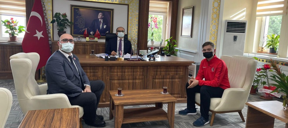 Okçuluk Milli Takım Sporcusu Eren Kırca, 14-19 Şubat 2022 tarihleri arasında Slovenya’nın Lasgo şehrinde düzenlenecek olan Okçuluk Avrupa Şampiyonasında ülkemizi temsil edecek olan, İlçemiz Kaymakamı Bekir Abacı’yı makamında ziyaret etti.