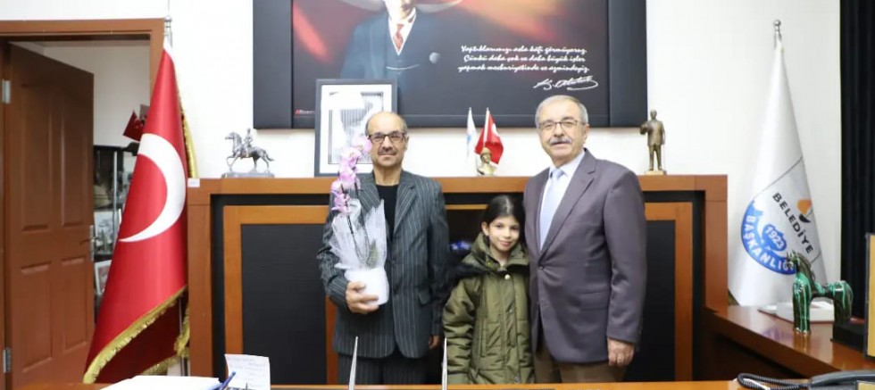 Gazi Süleyman Paşa İlkokulu 3/C sınıfı öğrencisi Nisa Nur Babadağlı, dedesi Orhan Babadağlı ile birlikte Belediye Başkanı Mustafa Özacar’ı makamında ziyaret etti.