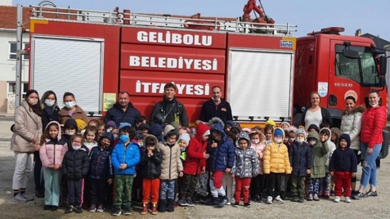 Gelibolu Belediyesi İtfaiye Müdürlüğü ekipleri, İlçe Milli Eğitim Müdürlüğü’ne bağlı Şehit Aybüke Yalçın Anaokulu öğrencilerine mini yangın tatbikatı yaparak, itfaiyecilik mesleğini tanıttılar.