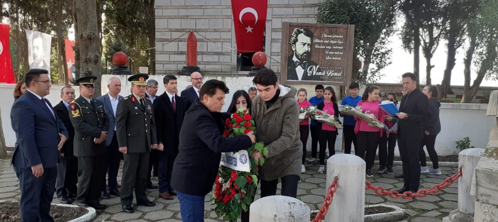 Törende, Namık Kemal'in mezarına çiçek bırakıldı. Saygı duruşu ve İstiklal Marşı’nın okunmasının ardından günün anlam ve önemini belirten konuşmayı yapan Gelibolu Namık Kemal Ortaokulu Türkçe öğretmeni Esra Başdeğmez, Namık Kemal'in 21 Aralık 1840 yılında Tekirdağ'da doğduğunu ve asıl adının Mehmet Kemal olduğunu belirterek, “Namık adını ona şair Binbaşı Eşref paşa vermiştir. Devrinin aydın kişilerinden Mustafa Asım Bey ve Fatma Zehra Hanımın oğullarıdır.