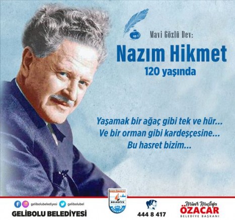 İlçemiz Belediye Başkanı Mustafa Özacar, Türk edebiyatının büyük şairi Nazım Hikmet Ran'ın 120. doğum günü nedeniyle bir mesaj yayınladı.