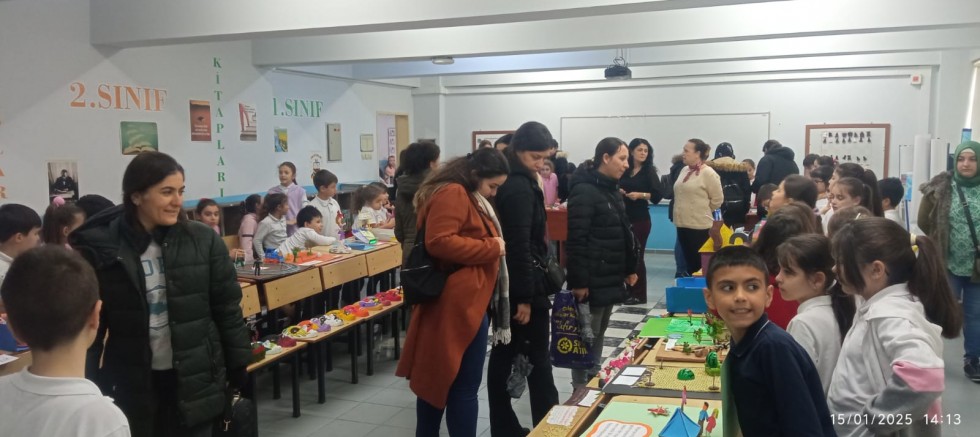 Sergide, öğrencilerin matematik dersinde hazırladıkları özgün geometrik cisimler, Türkçe derslerinde öğrendikleri atasözleri ve deyimleri yansıtan renkli maketler, sosyal bilgiler derslerinde inceledikleri fosiller ve görsel sanatlar dersinde sabundan yaptıkları gerçekçi meyve modelleri yer aldı.