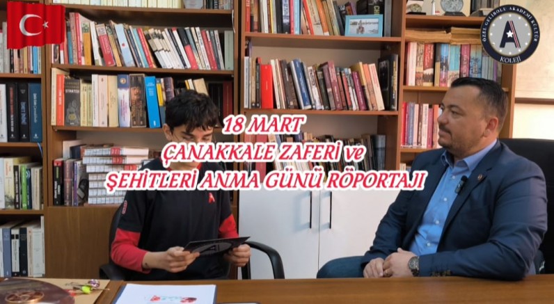 Gelibolu Akademi Kültür Koleji, 18 Mart Çanakkale Zaferi'nin 110. yıl dönümünü anlamlı bir etkinlikle kutladı. Kolej bünyesinde gerçekleştirilen özel röportajda, Çanakkale Üniversitesi Tarih Bölümü'nden Doç. Dr. Barış Borlat, öğrencilerden Semih Efe Ertaman'ın sorularını yanıtladı.