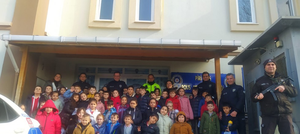 Gelibolu’da huzur ve güveni sağlayan Gelibolu Emniyet Müdürlüğü’nün, polis mesleğini ve yaptıkları görevleri tanımak ve öğrenmek amacıyla konukları 26 Kasım İlkokulu öğretmenleri Semra Sevim ve Leman Güz ile birlikte minik öğrenciler oldu. İlçe Emniyet Müdürü Ahmet Karaca tarafından makamında konuk edilen öğrenciler, müdür Karaca’nın sıcak ve sevecen tavırlarıyla birimleri gezerken, merak ettikleri soruları da sordular.