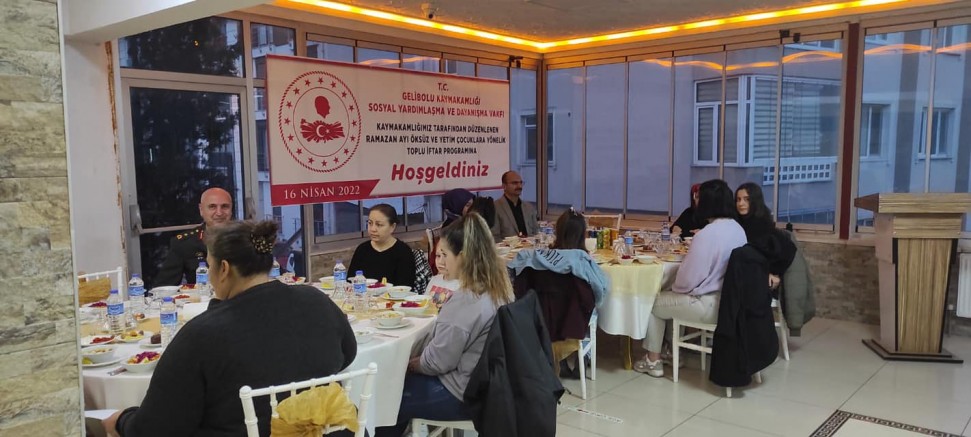 Gelibolu Kaymakamlığı himayesinde Sosyal Yardımlaşma ve Dayanışma Vakfı tarafından öksüz ve yetim çocuklu ailelere iftar yemeği programı düzenlendi.