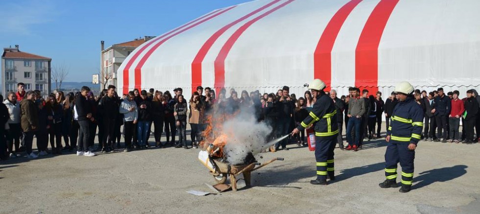 İlçemizde lise ve ilkokullarında Sivil Savunma Haftası nedeniyle yangın ve deprem tatbikatı yapıldı.