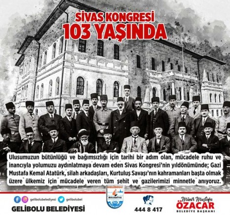 İlçemiz Belediye Başkanı Mustafa Özacar, Milli Mücadelenin mihenk taşı olan Sivas Kongresi’nin 103. yıldönümü nedeniyle bir mesaj yayımladı.