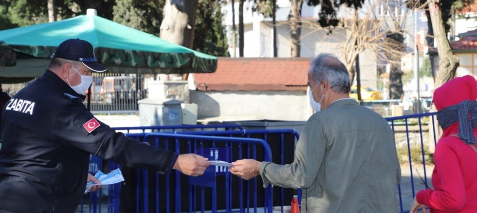 İlçe Pandemi Kurulu tarafından ilçemizde haftada bir gün pazar kurulması kararlaştırılarak, pazar yerinde üst düzey önlemler alınmaya devam ediyor. Alınan önlemlerin kontrolleri pazar yerinin tüm giriş-çıkışlarında Zabıta ve Emniyet Müdürlüğü ekiplerince sağlanırken, vatandaşların alınan tedbirlere uydukları görüldü. Pazarda en dikkat edilen husus, her zaman olduğu gibi sosyal mesafe oldu. Cumartesi günü ilçemizde havanın güzel olması nedeniyle pazar alışverişini yapmak isteyen vatandaşlar, pazara girebilmek için sosyal mesafeye dikkat ederek bekledi. Pazarın kalabalık olmaması için kontrollü olarak giriş çıkışların yapıldığı halk pazarında, Zabıta ve Emniyet Müdürlüğü ekipleri vatandaşları sıra ile pazaryerine girişini sağladı. Pazara girişlerde Zabıta ekipleri vatandaşlara ücretsiz olarak maske dağıtmaya devam etti.