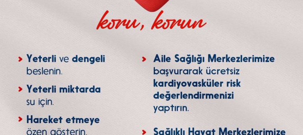 Dünya Kalp Günü vesilesiyle herkesi kayıtlı oldukları aile hekimlerini düzenli olarak ziyaret etmeye, periyodik tarama ve izlemlerini yaptırmaya; sağlıklı yaşam danışmanlığı almak üzere en yakın sağlıklı hayat merkezini ziyaret etmeye davet ediyoruz.