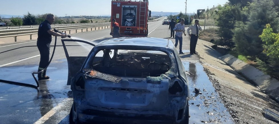 İlçemizde seyir halindeyken alev alan otomobil kullanılamaz hale geldi.