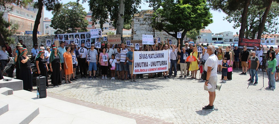 İskele Meydanındaki Atatürk Anıtı önünde gerçekleştirilen basın açıklamasına dernek yöneticileri ve üyeleri ile vatandaşlar katıldı. Sivas Katliamının 31. yıldönümünde iskele meydanında gerçekleştirilen basın açıklamasını Gelibolu Cemevi Kültür ve Dayanışma Derneği Başkanı Aynur Demirkaya okudu.