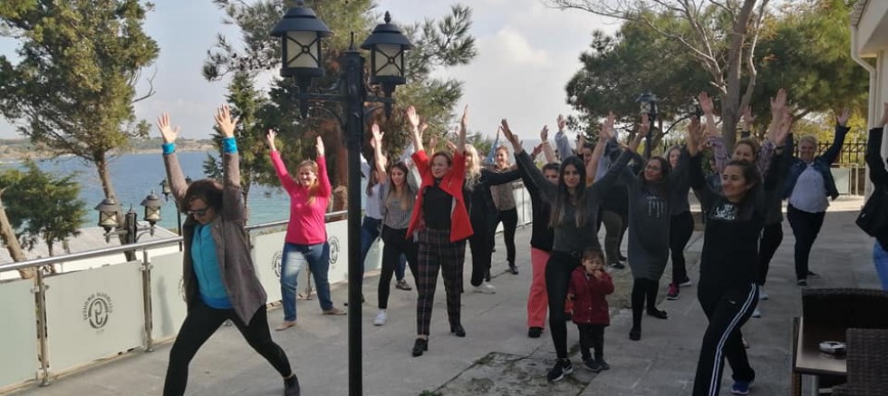 Step aerobik kursu katılımcıları dün kahvaltıda buluştular. Yapılan kahvaltı sırasında katılımcılarla sohbet gerçekleştirildi. Sportif Eğitim Uzmanı ve Yoga Eğitmeni Gülden Okçu Engin tarafından katılımcılara kahvaltı sonrası dogru nefes alma teknikleri hakkında uygulamalı eğitim verildi. Sağlıklı beslenme hakkında bilgiler verildi. Doğru bilinen yanlışlar üzerine konuşulup, katılımcıların merak ettikleri sorulara cevaplar verildi. Ardından bahçeye geçilip minik bir yoga seansı, yogaya ait asanalar, yoga pozları katılımcılar tarafından yapıldı. Seminer havasında dolu dolu bir kahvaltı organizasyonu gerçekleştirildi.