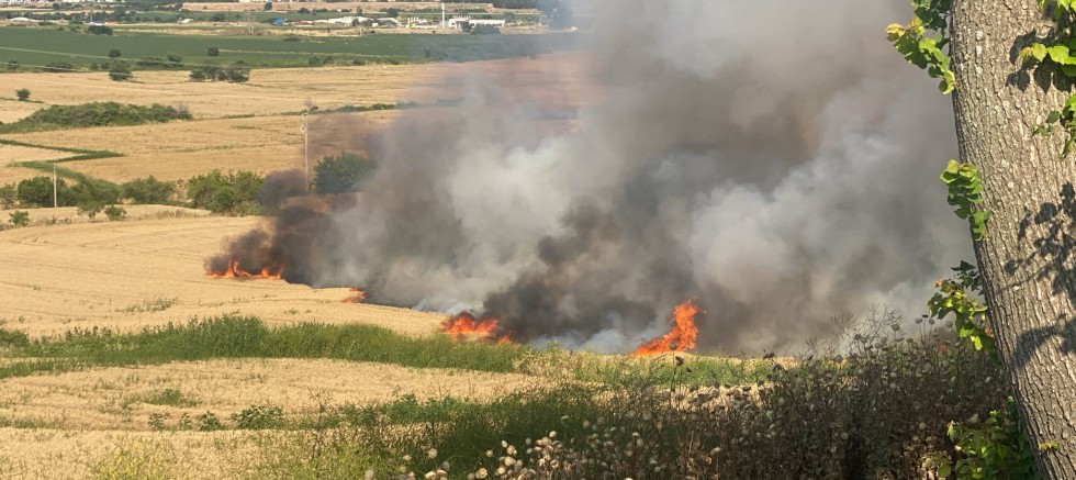 Dün saat 17.15 sıralarında ilçemize bağlı Kavaklıtepe köyü yakınlarındaki tarım arazilerinde başlayan yangın, rüzgarın etkisiyle kısa sürede geniş bir alana yayıldı.