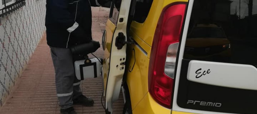 İlçemizde ticari taksiler ve şehir için minibüsler dezenfekte edilmeye devam ediyor.