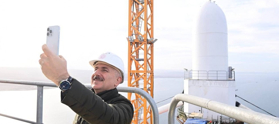 Ulaştırma ve Altyapı Bakanı Adil Karaismailoğlu, Çanakkale Savaşı kahramanlarından Seyit Onbaşı'nın top mermisi figürleri köprünün kulelerine yerleştirilirken 318 metre yükseklikte 1915 Çanakkale Köprüsü’nün üstünde AK Parti Grup Başkanvekili ve Çanakkale Milletvekili Bülent Turan ile görüntülü konuştu.