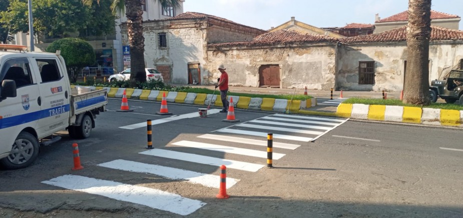Zabıta Müdürlüğü ekipleri tarafından, dün 26 Kasım Caddesi, Tuğsavul Caddesi, Atatürk Meydanı ve balıkhane önünde trafik akışkanlığını ve yayaların güvenliğini sağlamak amacıyla yaya geçitleri ile yol çizgileri yenilendi.