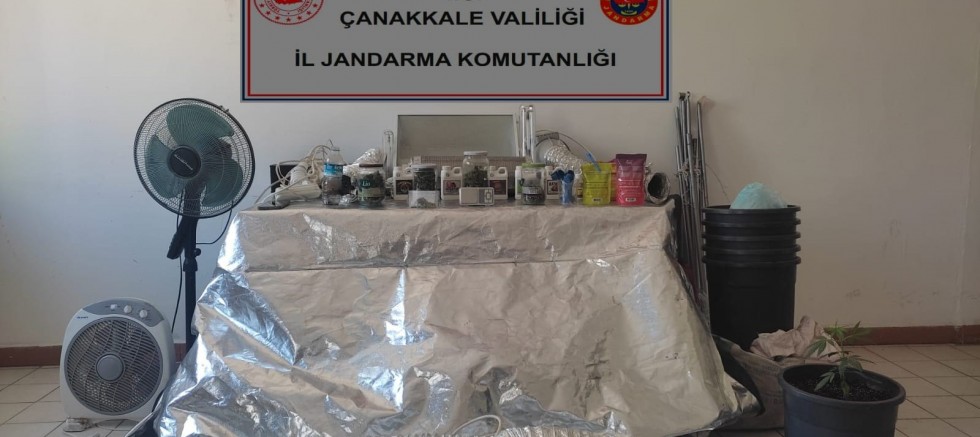 Çanakkale İl Jandarma Komutanlığınca uyuşturucu madde imal ve ticareti ile mücadele kapsamında, ilçemizde iki adrese baskın düzenlendi. Şüpheli şahsın adreslerinde yapılan aramalar neticesinde; 1 adet iklimlendirme çadırı, 1 kök Skunk bitkisi, 1 adet hassas terazi, 1 adet iklimlendirme sistemi, 100 gram Skunk maddesi, 12 adet 7,65 mm tabanca fişeği, 1 adet 9 mm kurusıkı tabanca, 1 adet cep telefonu ele geçirildi. Yakalanan şüpheli şahıs hakkında yasal işlem başlatıldı.