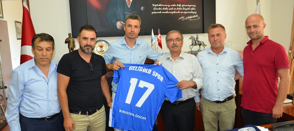 Geliboluspor Kulübü Yönetim Kurulu Üyeleri, Başkan Özacar’a adının yazılı olduğu 17 numaralı anı forması hediye ettiler.