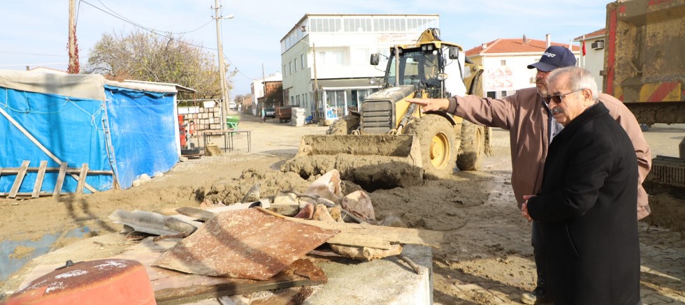 Köye gelen çamur selinden etkilenen Burhanlı köyünde muhtar Sezer Danabaş’tan bilgi alan Belediye Başkanı Mustafa Özacar, geçmiş olsun dileklerini ileterek; “Yaraların sarılması için tüm kurumların koordineli şekilde çalıştığı bölgede bizler de itfaiye ve su kanalizasyon ekiplerimizi seferber ettik. Afetten etkilenen yerlere desteğimizi sürdüreceğiz” dedi.