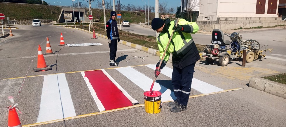 İlçe Trafik Komisyonu’nun belirlediği noktalarda sürücülerin dikkatinin çekilmesi amacıyla yapılan çalışmayla ile yaz dönemine girdiğimiz şu günlerde yol çizgilerinin bakım ve yenilenmesi işlemleri yapılmaktadır. Vatandaşlarımızın rahatlıkla karşıdan karşıya geçmeleri için boyaları yıpranmış hatta silinmiş olan yaya geçidi çizgilerinin yeniden çizilmesiyle bakımlarını gerçekleştiriliyor.