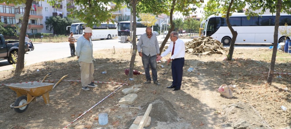 Belediye Başkanı Mustafa Özacar, önümüzdeki günlerde halkın kullanımına sunulacak, 100.Yıl Barış Ortaokulu yanında yapımı son aşamaya gelen ve içerisinde çocuk oyun alanı, dinlence alanı, kayrak taşları ile oluşturulan yürüyüş yolu bulunan park alanında ekiplerle birlikte incelemede bulundu.